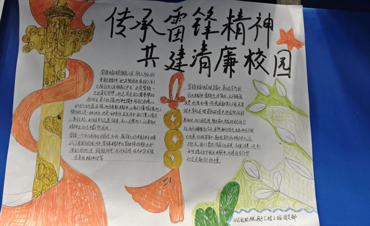 活动现场,团支书结合雷锋事迹,解读其精神的时代内涵与廉洁奉公、无私奉献的核心,着重指出廉洁是青年立身之本,更是未来机电行业从业底线。活动结合校园清廉建设与机电专业实践,同学们积极互动,结合专业学习、实验记录、评优评先等场景探讨诚信廉洁之道,氛围热烈;现场还设置签名承诺环节,同学们郑重许下传承雷锋精神、坚守廉洁准则的誓言。