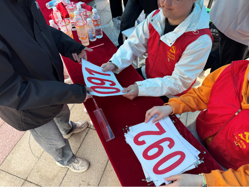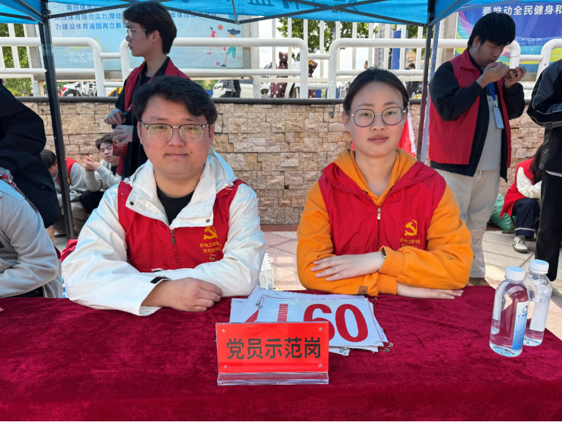 育场外围学院专属服务台,定岗值守、分工明确、协同配合。全体人员自觉规范佩戴党员徽章,主动亮明党员身份,严守工作纪律,端正言行作风,时刻以党员标准严格约束自身言行。大家始终秉持严谨务实的工作态度与热情暖心的服务宗旨,扎实开展赛场秩序维护、物资收纳补给、师生路线引导、突发情况帮扶、后勤便民服务等多项工作。面对繁重琐碎的保障任务,党员同志们不畏辛劳、主动靠前、耐心服务,在赛场一线主动担当、默默奉献,用实际行动践行责任使命,充分彰显了新时代学生党员的先进性、自觉性与表率作用。