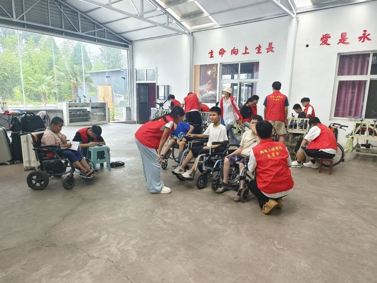 与此同时,实践团队的志愿者们积极与中心的孩子们进行互动交流。志愿者们用亲切的笑容、温暖的话语,迅速拉近了与孩子们的距离。在简单的认识交流过程中,志愿者们了解孩子们的兴趣爱好、日常生活以及学习情况,现场充满欢声笑语,洋溢着温馨和谐的氛围,为未来进一步开展志愿服务活动搭建起了情感桥梁。值得一提的是,为拓宽实践活动的影响力,助力乡村特色推广,当天下午,实践团队充分发挥专业优势,在生命之树关照中心搭建起直播设备。团队成员分工明确,调试摄像头、架设麦克风、检查网络连接……每一个环节都有条不紊地进行。经过数小时的努力,一套完整且专业的直播设备搭建完成,为后续通过直播展示中心特色、推广乡村文化和产品奠定了坚实基础。