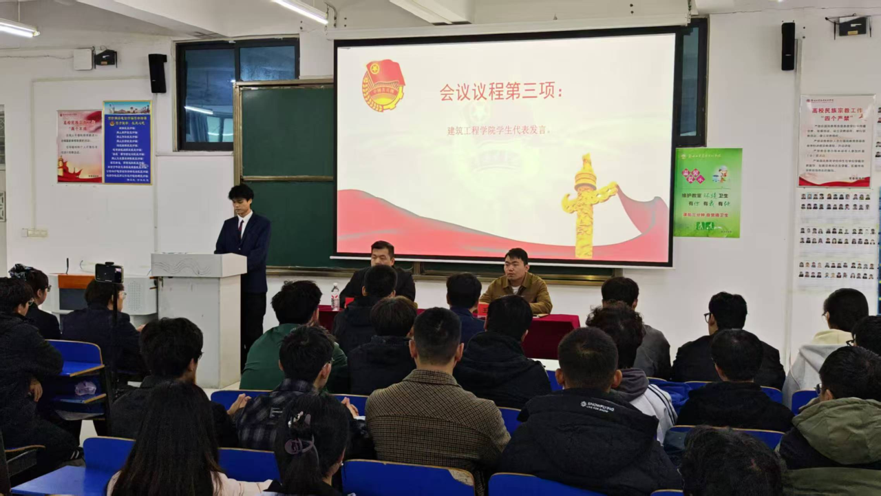 接着由建筑工程学院优秀学生代表岳俊同学发言:作为入团积极分子,我们要明确目标,坚定我们的初心与使命,恪守自己的职责。紧接着,建筑工程学院分团委书记魏泽凡进行讲话,他的讲话让全体入团积极分子更加坚定自己的责任与义务。