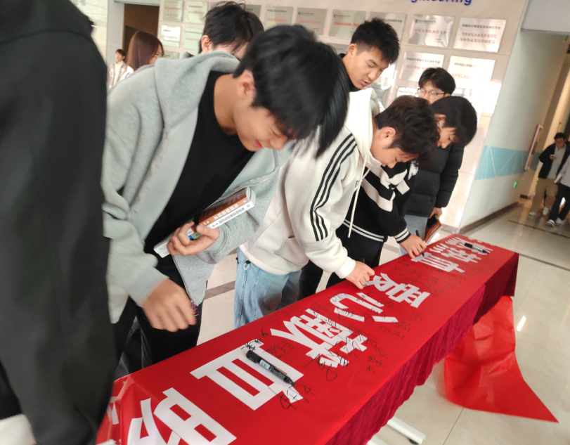 一纸横幅,承载千钧诺言;一腔热血,连接生命两端。此次签字仪式,充分展现了机电工程学院师生高度的社会责任感和乐于奉献的良好风貌。用机电人的热血,为生命护航,为文明校园、健康中国贡献坚实的青春力量。