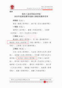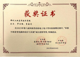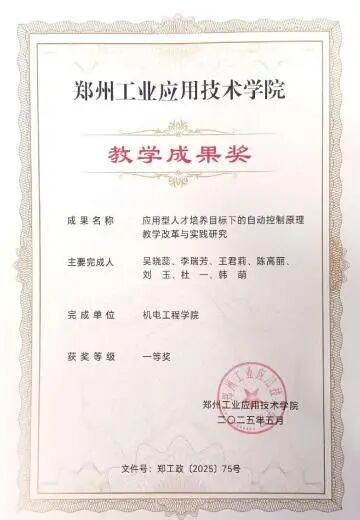 1.我院教师积极投身各类教学与专业赛事,凭借扎实的专业功底和出色的教学能力斩获多项荣誉。其中,吴晓蕊、刘玉等教师在专业赛事中表现亮眼,先后荣获“余姚杯”中国高校机器人实验教学创新大赛全国三等奖、河南省高校电工电子类实验室建设专业委员会与河南省电工技术学会联合颁发的特等奖等重要奖项。