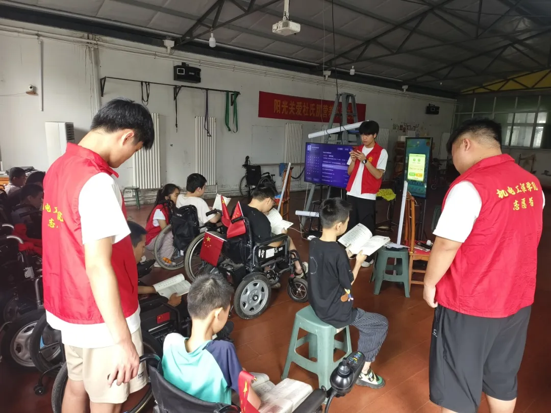 早餐过后的时光,没有手机屏幕的光亮,却盛满了更动人的色彩。孩子们围坐在一起朗读古诗,稚嫩的声音里藏着对古人风骨的向往;或是迎着清晨的阳光练习发声,细碎的光影落在他们轮椅上小小的身躯上,竟透出蓬勃的生机,仿佛每一寸肌肤都在努力汲取着阳光的力量。此刻的院子格外安静,只有孩子们的声音在空气中流淌,温柔得像裹着棉花的风,却又充满破土而出的生命力。
