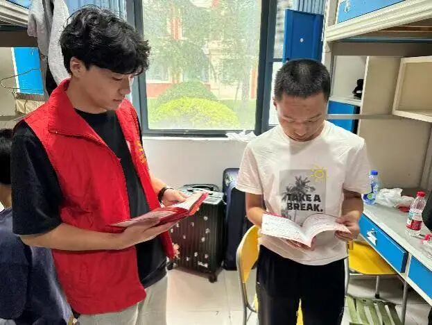 活动期间,党员志愿者深入东、西校区详细地为新生解读《大学生中国特色社会主义民族宗教理论知识手册》,帮助新生辨析宗教与邪教的本质区别,树立正确的宗教观,并理清宗教与科学的关系,自觉践行社会主义核心价值观,营造“崇尚科学,理性信仰”的校园氛围。此外,党员志愿者们分为若干检查小组,分工明确。一部分深入宿舍向新生发放《校园宗教工作知识手册》,介绍了宗教事务管理的法律法规,强调了教育与宗教相分离的原则,以及在校园内严禁进行任何形式的宗教活动;另一部分负责监督校园内是否存在宗教活动,防止任何形式的极端宗教思想或违法宗教活动的传播,进一步巩固了新生对宗教的正确认识,增强了他们的法律意识和自我防护能力。
