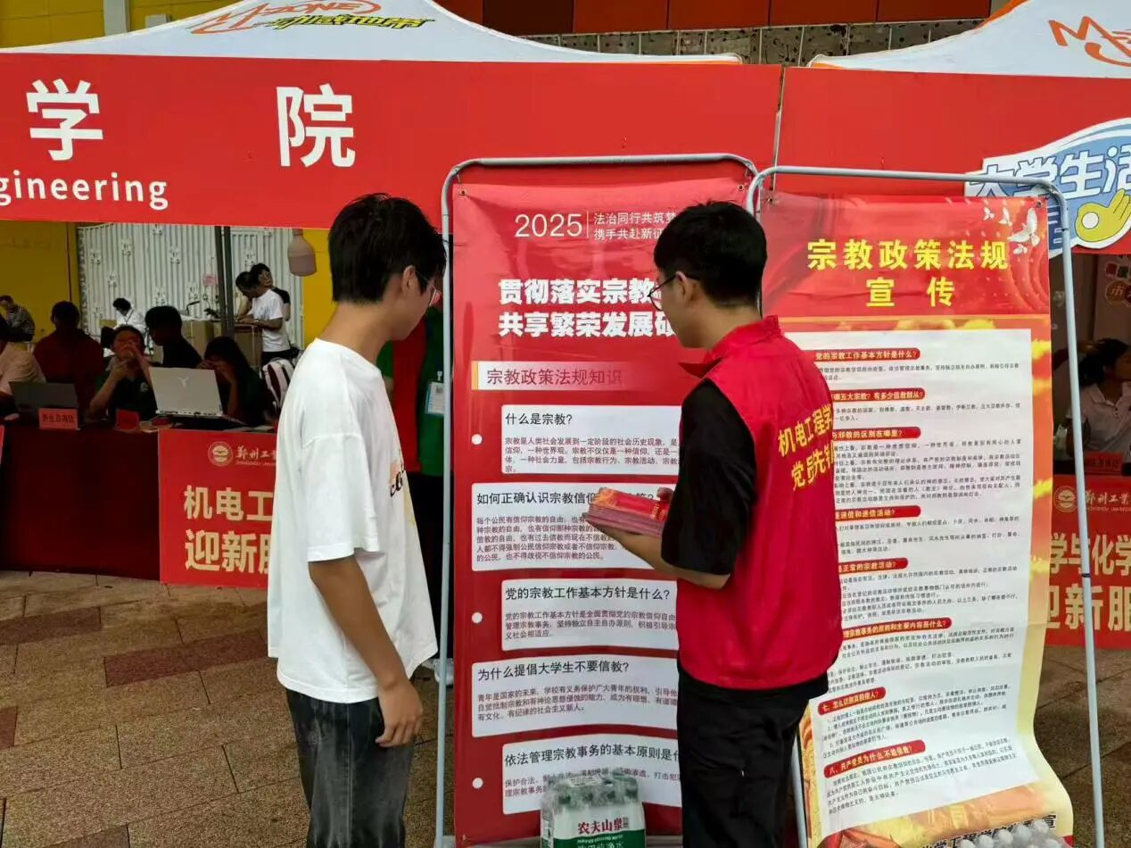(文/王斐 图/夏高祥 高梓淼)为深入学习贯彻习近平总书记关于民族宗教工作的重要论述,加强党的民族宗教政策和国家有关法律法规的宣传教育,机电工程学院党委于9月3日组织开展“铭记历史·筑牢信仰”主题教育活动,将纪念抗战胜利80周年阅兵仪式与宗教观教育深度融合,以阅兵精神中“人民军队忠于党”的信念,教育党员坚定马克思主义宗教观 ,主动识别和抵制邪教及非法宗教活动,为新生营造健康的思想环境。