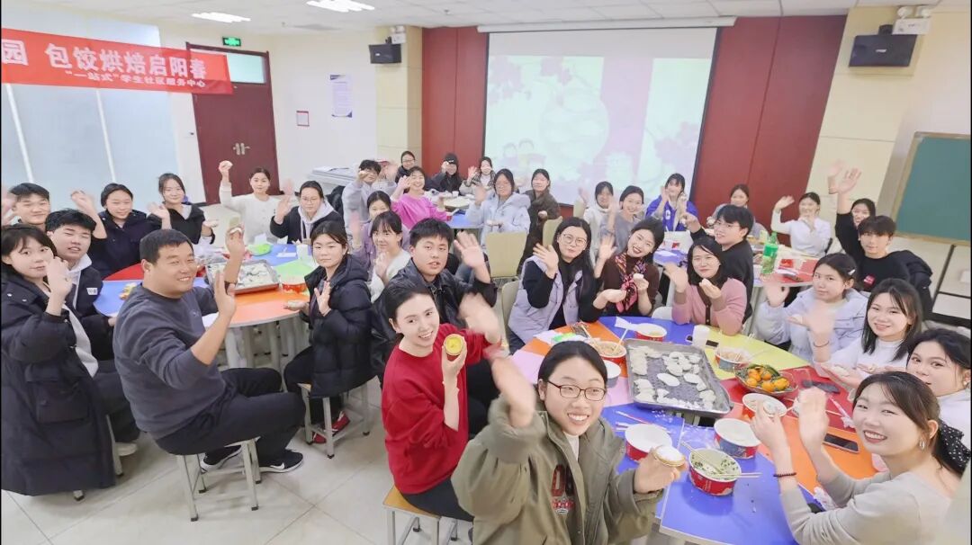 当热气腾腾的饺子、汤圆与金黄酥香的蛋挞出炉时,活动进入了最温暖的共享时刻。师生们围坐在一起,品尝着自己的劳动成果,分享着劳动的快乐与节日的喜悦。食物香甜,情谊更浓,一站式学生社区内洋溢着家一般的温暖与团圆气息。