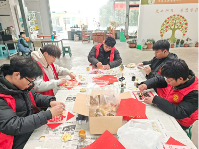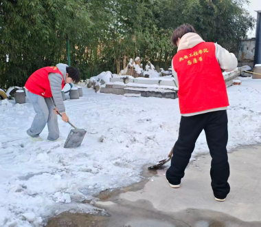 午餐时分,志愿者们有序为孩子们打饭、分餐,贴心关照每一位孩子的用餐需求,用行动传递关爱与呵护。午后的时光充实而多彩,志愿者们带领孩子们动手制作福贴,在折折剪剪、涂涂画画中感受传统民俗的乐趣,一张张精致的福贴承载着美好期许;恰逢冬日降雪,志愿者们手持工具铲雪除冰,为孩子们打造安全通畅的活动环境,红马甲成为雪地里最亮眼的风景。