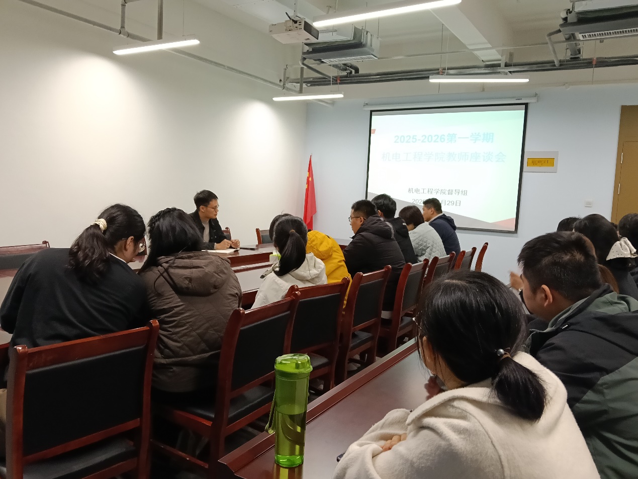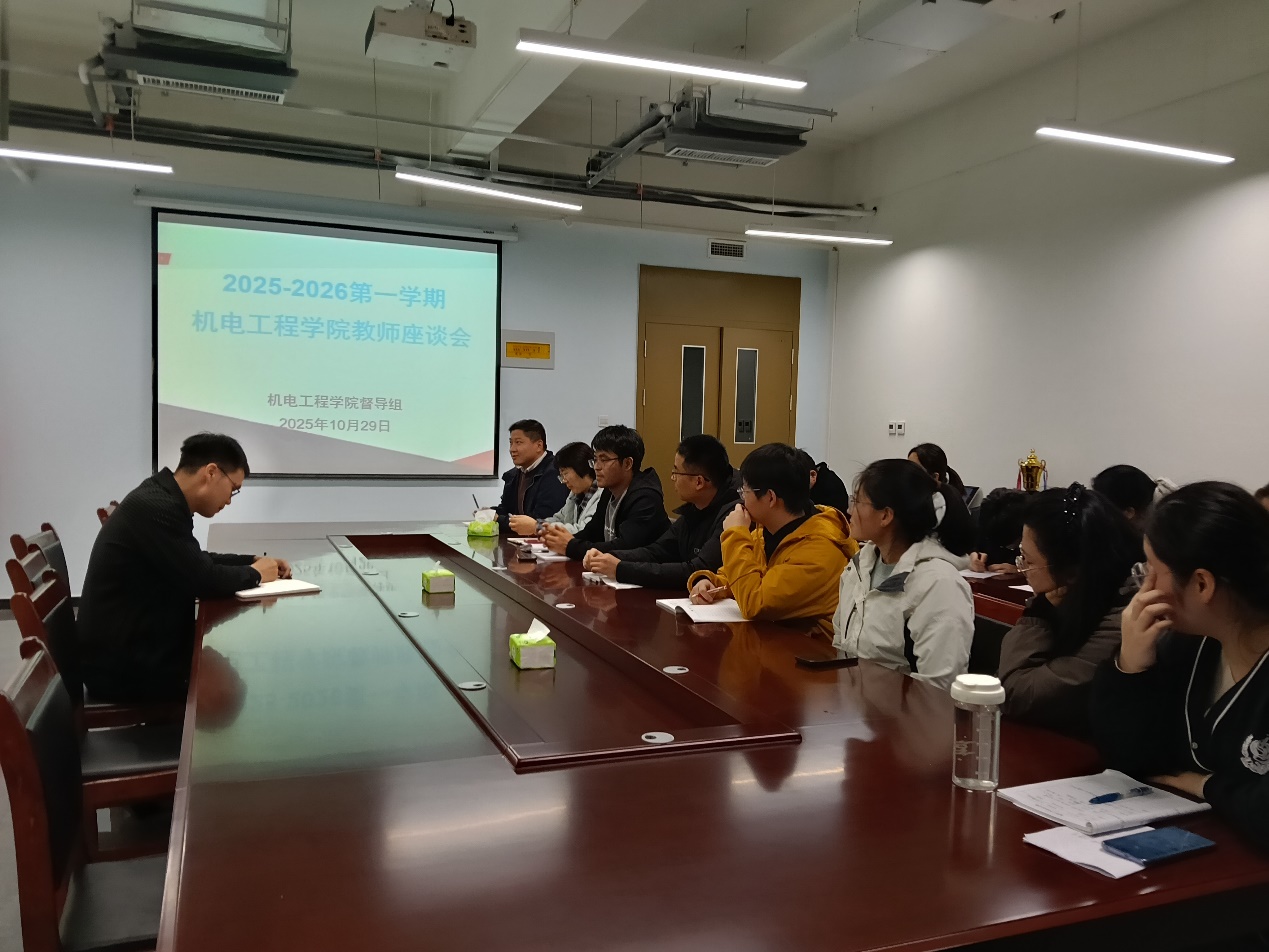 (文/雷雪宁 图/刘若兰)为精准把握教师在课堂教学、科研创新及日常工作中的现实诉求,切实为教师排忧解难、赋能成长,机电工程学院于10月29日16:00在教研中心709会议室召开专题教师座谈会。学院副院长王国虎主持会议,各教研室(含实验中心)及学生口的3名教师代表应邀参会,围绕“深化教学改革·赋能科研发展”核心主题,结合学院发展实际展开深度研讨。