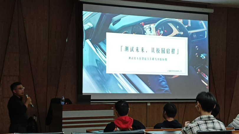讲座中,贾光普老师围绕新能源汽车产业发展趋势,深入解析了智能汽车测试的核心方向与关键技术,结合实际项目案例阐释了行业核心需求,让师生直观感受领域技术前沿。针对高校课程与产业需求的差距,贾光普老师提出了针对性补齐方向,介绍了校企共建人才生态的实践模式,分享了技能培养与就业发展的相关路径。互动环节,贾光普老师就师生关切的课程学习、职业发展等问题逐一解答,现场氛围热烈。
