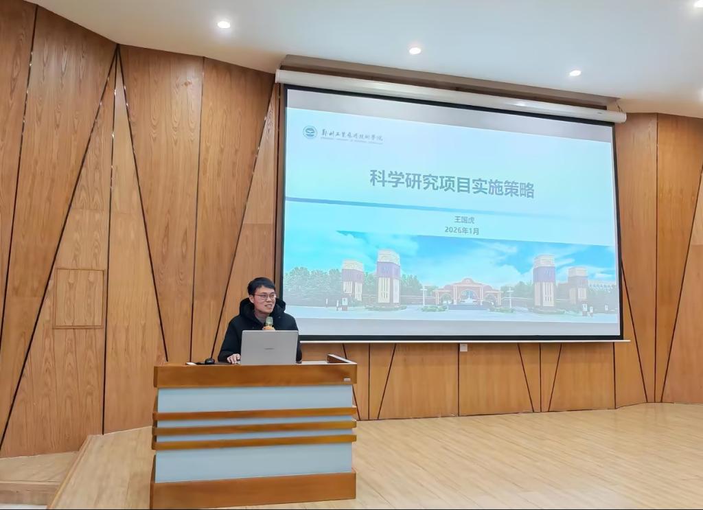 为提高我院整体科学研究创新能力,助力科研项目高质量开展,1月8日,机电工程学院在建工楼梦想厅开展了科学研究项目实施策略专题培训。培训由学院教学科研副院长王国虎主讲。院领导班子及全体教职工参加了培训。